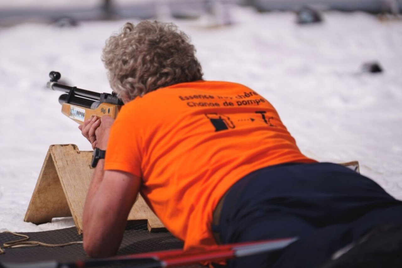 Pour corser l’affaire et limiter la perte de temps, il a fallu apprendre à se mettre en position de tir en gardant les skis aux pieds.