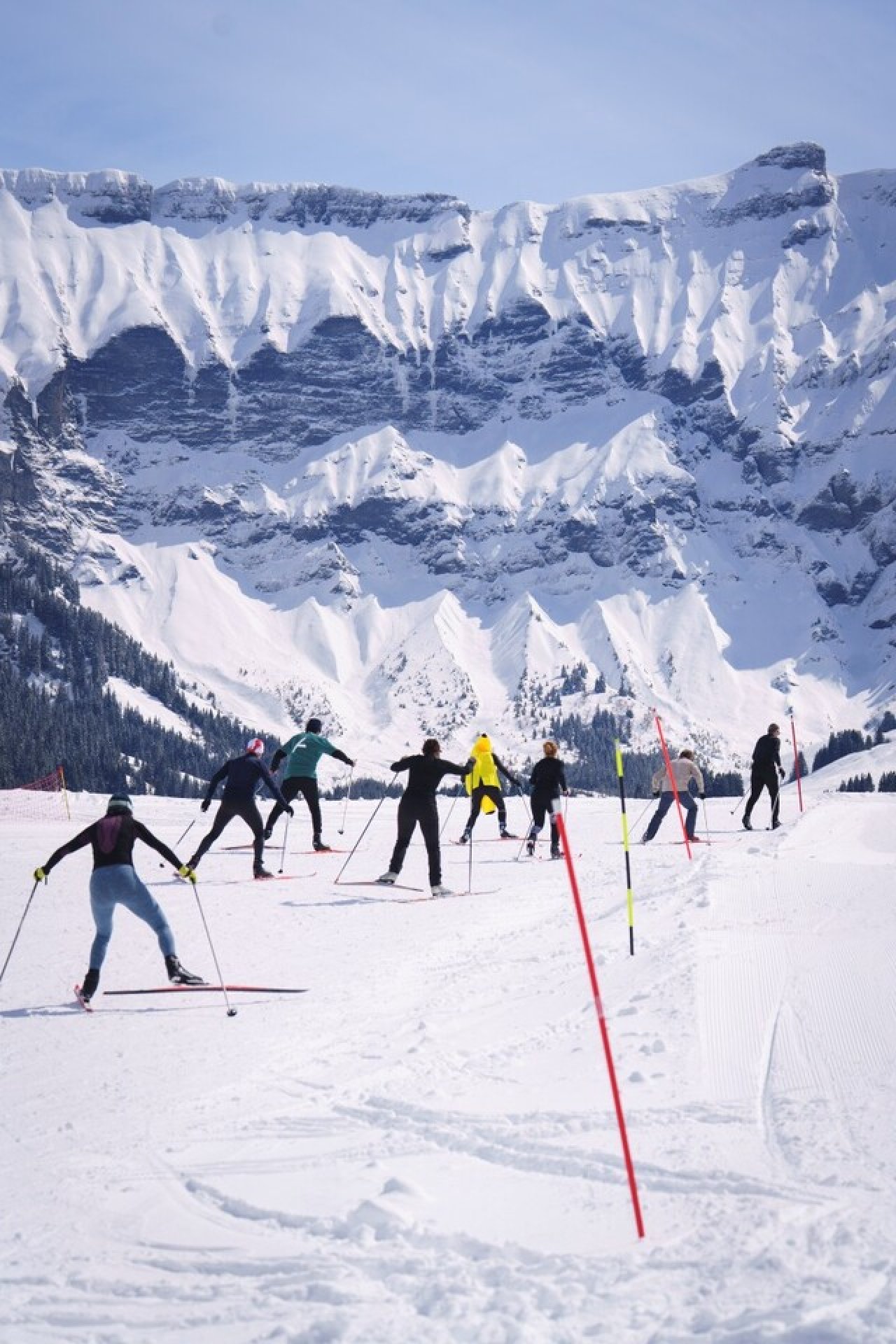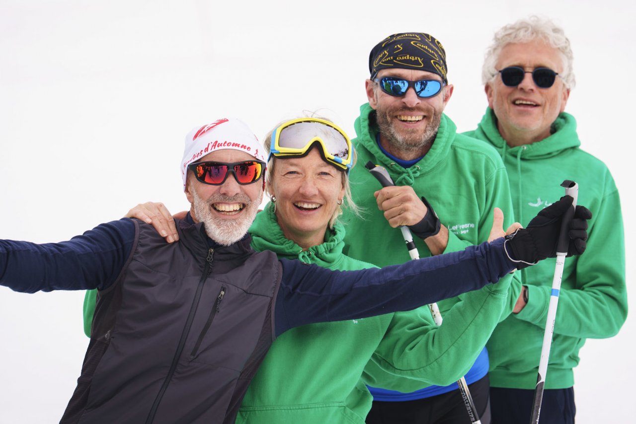 La matinée était dédiée à la découverte des disciplines et aux entraînements. Nous avons tous les quatre pris nos marques sur une neige fraîche extraordinaire et un superbe soleil.